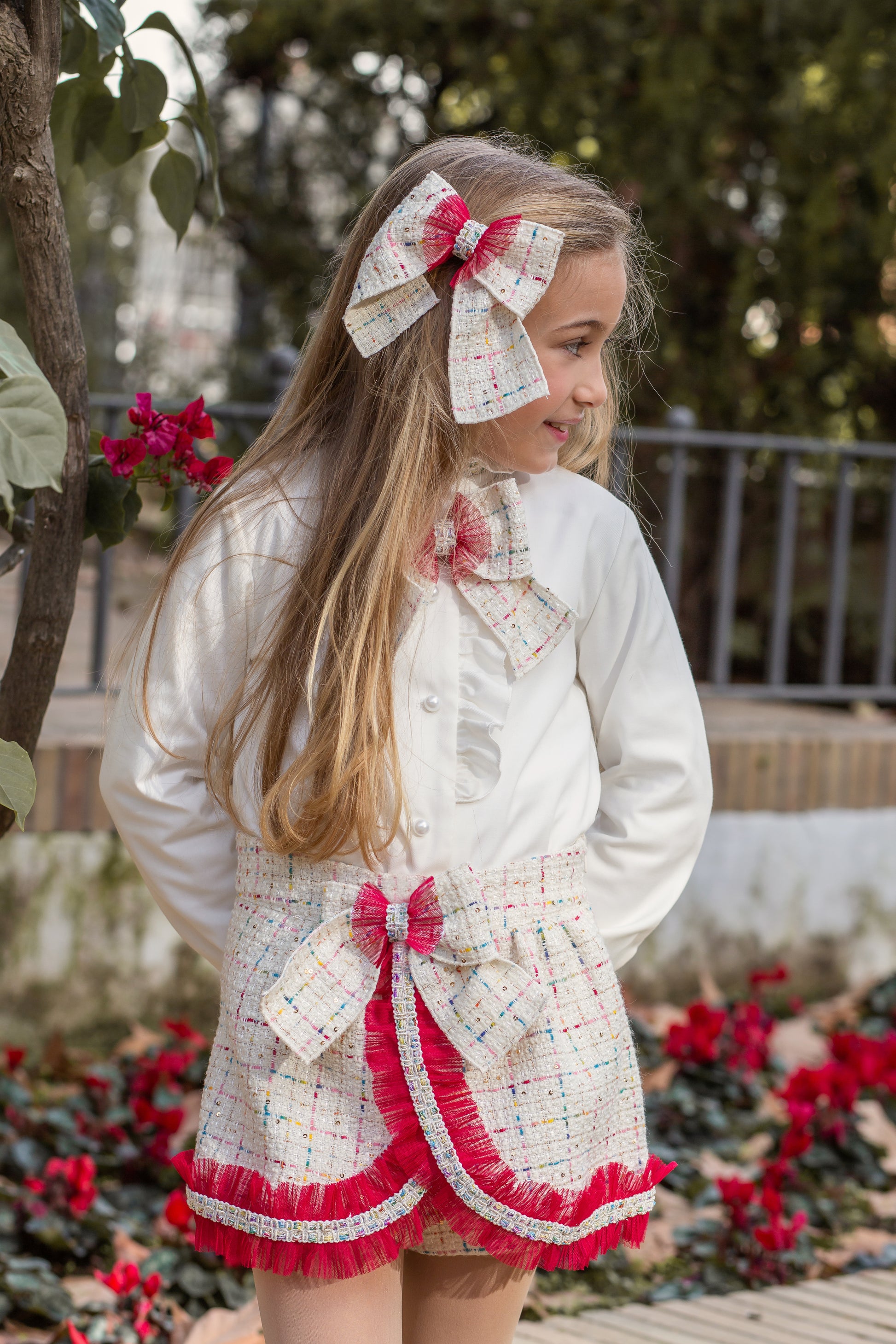 Naxos Red Multicolour Tweed Short Set